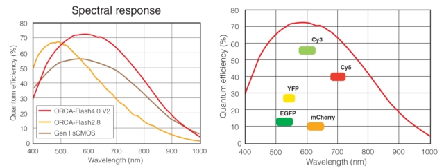 除此之外的其他高靈敏度特性,諸如高量子效率、高速讀出(100幀/秒@400萬像素)等仍然被保留了下來,這使得ORCA-Flash4.0 V2仍然是市場上******的sCMOS相機(jī)